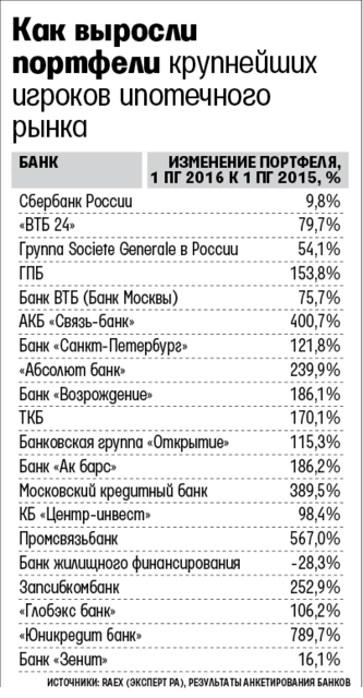 Связь-банку (+401%) помогла субсидированная ипотека – как классические программы, так и военная ипотека, говорит руководитель розничного, среднего и малого бизнеса Сергей Малышев: в I квартале 2015 г., до господдержки, ипотека практически не выдавалась. К концу года банк ждет всплеска продаж: программа субсидирования подходит к концу, клиенты должны завершить сделки до 1 января 2017 г. Банк также прогнозирует рост продаж классической ипотеки. «Цены стабилизировались, покупатель начал возвращаться, и застройщики, которые придерживали продажи хороших объектов до лучших времен, активно занялись их продвижением», – поясняет Малышев.