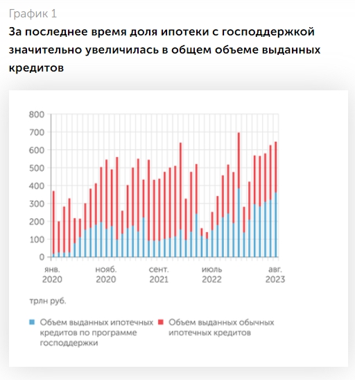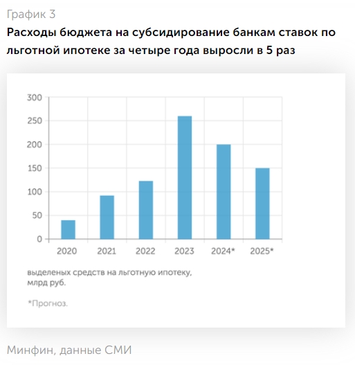 Если в 2020 году государство субсидировало банкам недополученных доходов по льготным программа на 40 млрд рублей, то в 2022-м уже на 122 млрд. По заявлению заместителя директора департамента финансовой политики Минфина Алексея Яковлева, в 2023 году из бюджета на льготную ипотеку выделят 260 млрд рублей. И их уже явно не хватает. «По данным “Дом.РФ”, на 25 августа 2023 года объем возмещений превысил 200 миллиардов рублей. При более высокой ключевой ставке и с учетом роста спроса на ипотеку в конце года потребуется больший объем финансирования, чем 260 миллиардов рублей», — считает главный аналитик Совкомбанка Наталья Ващелюк.